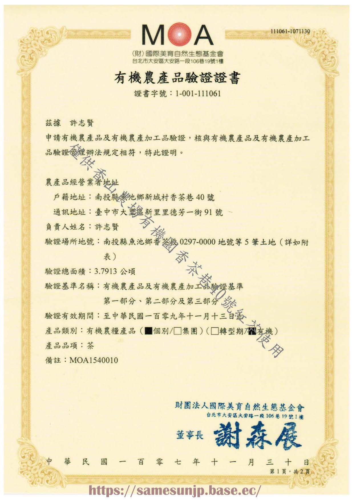 製造場所:台湾 南投県魚池郷新城村香茶巷40号