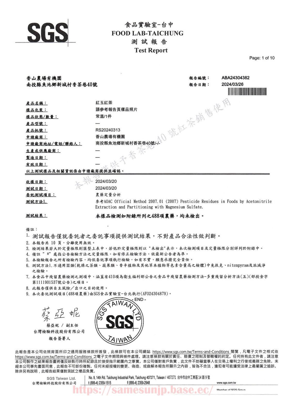 台湾SGSにて検査証明書も取得しているだけではなく、台湾MOAにて検査証明書も取得している希少な最高級紅茶です。